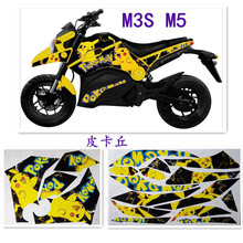 电摩小猴子贴纸M3S红蚂蚁摩托车贴花电动车改装个性防水m5猫贴膜 皮卡丘【不退不换】