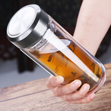 禾艾苏(heisou)双层玻璃杯喝水杯男女杯子玻璃水杯商务杯泡茶杯茶水分离杯便携水杯车载水杯随手杯 银色(500ml)