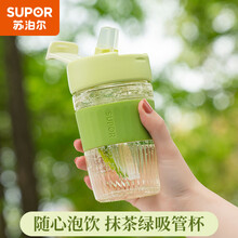 苏泊尔(SUPOR)玻璃水杯女带吸管小浪杯便携夏季泡茶大容量咖啡杯子ins风 【360ml-抹茶绿】吸管杯