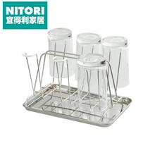 日本NITORI宜得利家居 欧式杯子架玻璃水杯挂架套装置物架茶杯酒杯架托盘收纳倒挂架 水杯沥水架 银色