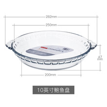 菲内克斯钢化玻璃水果盘菜盘子家用餐具8寸鱼碟菜碟 微波炉烤盘耐热双耳盘玻璃盘子 10寸圆盘