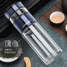 富光 泡茶师系列玻璃杯 双层玻璃水杯便携家用泡茶杯男带滤网茶水分离水杯 蓝色260ML(带提环)