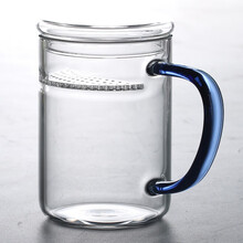 朴原良品 耐热玻璃杯高硼硅玻璃水杯家用耐高温泡茶杯子带过滤网办公杯新月杯350ml 新月杯350ml【蓝把】