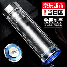 宝菲尼水晶杯高档玻璃杯双层定制刻字logo防摔杯子口杯玻璃水杯男士泡茶杯耐高温保温茶水分离玻璃茶杯 蓝宝石 380ML