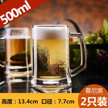 【2只装】青苹果 创意啤酒杯透明耐热玻璃水杯扎啤杯菠萝杯子带把加厚大容量酒杯果汁牛奶杯子 慕尼黑大号-500毫升【两只装】