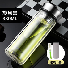 富光玻璃杯双层便携玻璃水杯大容量耐热家用杯子带盖过滤茶杯定制 380ml旋风黑