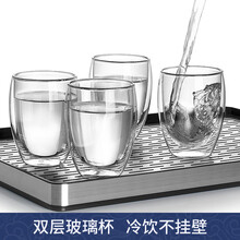 KARPHOME卡普家居 耐热双层玻璃水杯家用套装耐高温茶杯杯子创意凉杯果汁杯人工吹制防爆透明无铅杯 (6只装)350ML