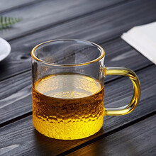 美斯尼 小茶杯玻璃茶具主人杯功夫品茗杯茶碗小泡茶锤纹玻璃水杯子咖啡马克杯非陶瓷带把手耐热 单只装