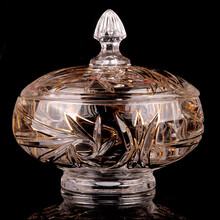 弗莱文茨金色风车欧式水晶玻璃水果盘糖果盘糖罐储物罐 糖果盆 金色加盖大号