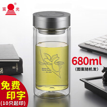 富光玻璃杯时尚男女士商务车载双层耐热防烫便携玻璃水杯泡茶杯厚底带茶隔透明水杯子可企业定制印字LOGO 680ml直杯(图案随机)