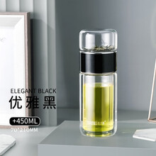 德国NRMEI茶水分离泡茶杯子玻璃水杯便携可爱少女简约过滤花茶杯男双层 优雅黑450ML【茶水分离+双层防烫+礼盒包装】