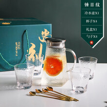 舍里家用玻璃水具套装客厅玻璃杯喝水杯子耐热冷水壶伴手礼乔迁礼物 【直身锤纹银盖款】一壶四杯礼盒装
