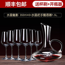 Delisoga 红酒杯套装家用6只醒酒器欧式大号玻璃水晶杯葡萄酒高脚杯酒店饭店用酒具 【店铺推荐】水晶魅影6只+醒酒器【加厚冷切口】