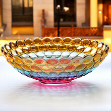 淳意 水晶玻璃水果盘透明欧式果盘客厅糖果盘 厨房用品 零食盘客厅干果盘 家居用品 七彩琉璃色大号