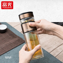 富光 泡茶师系列玻璃杯 双层玻璃水杯便携家用泡茶杯男带滤网茶水分离水杯 茶色260ML