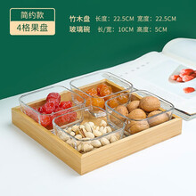 青苹果玻璃水果盘分格干果盘客厅家用糖果盘创意简约风零食盘 透明玻璃果盘4只+4格竹盘