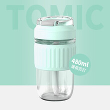 特美刻TOMIC咖啡杯手持玻璃水杯男女儿童学生便携式背带吸管杯随手茶水杯子 薄荷苏打 480ml