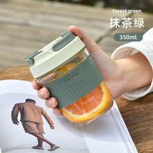 英国Vanow玻璃水杯女带吸管便携可爱夏季泡茶大容量咖啡杯子ins风 抹茶绿 350ml