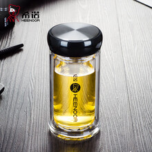 希诺双层玻璃杯加厚男士办公室隔热泡茶杯带过滤网女士透明玻璃水杯 带盖便携车载水杯子礼盒装 团购刻字 280毫升(XN-6707)