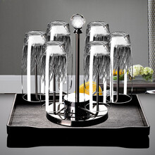 路易治·波米奥尼 进口水晶玻璃水杯牛奶杯果汁杯家用套装啤酒杯茶杯激光刻字 家用水杯套装 6个花纹圆底圆口435ml+杯架托盘