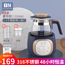 贝能婴儿恒温水壶调奶器1.2L多功能婴儿冲泡奶粉冲奶器热水壶温奶暖奶器玻璃水壶养生壶 豪华款普鲁士蓝【316不锈钢+小夜灯+暖奶篮+炖盅