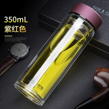 富光玻璃杯 男女士商务车载双层耐热玻璃水杯 带茶隔透明时尚便携泡茶杯子支持企业定制 红色350ML