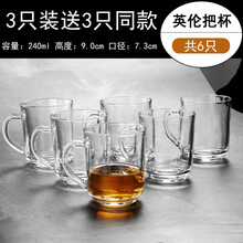 玻璃杯无铅玻璃水杯子耐热套装啤酒杯家用透明泡花茶杯带把 英伦把杯240ml 买3送3共6只