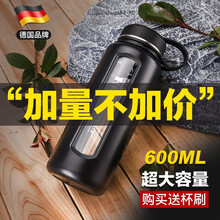 德国NRMEI超大容量玻璃水杯大号夏季防摔水瓶壶2000便携水杯子男 睿智黑600ML【经典款+杯刷】