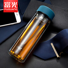 富光玻璃杯 格调系列 男女便携玻璃水杯泡茶杯 双层玻璃杯水杯 带茶隔玻璃茶杯 浅蓝色 320ml