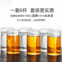 雅派带手把玻璃杯泡茶杯品茗杯高硼硅喝茶玻璃杯子 办公室茶杯水杯 玻璃杯套装六个绿茶杯 6个玻璃水杯套装