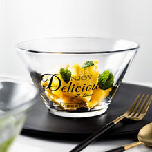 瓷彩美(CECEME)创意玻璃水果沙拉碗 家用玻璃碗甜品碗蔬菜料理碗早餐碗无铅加厚 黑-delicious沙拉碗