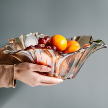 家丽欣 网红果盘现代客厅家用创意水晶果碟欧式零食干果盆玻璃水果盘 30cm葵花琥珀色玻璃篮