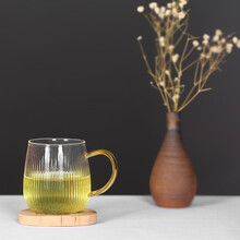 手工之家 玻璃杯 竖纹黄把茶杯早餐牛奶果汁杯泡茶杯玻璃水杯柠檬杯酒杯