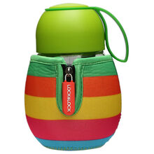乐扣乐扣玻璃水杯 便携茶杯 单层耐热玻璃杯 390ml 学生白领杯子 儿童杯 带茶网杯套 LLG652GRN(毛毛虫)