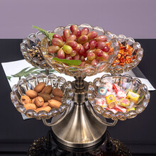 吉召 轻奢家用水晶玻璃水果盘现代客厅欧式茶几网红创意高档多层果盘 可旋转果盘 大号