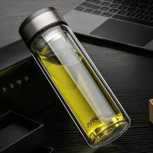 富光双层玻璃杯男女水杯子家用玻璃水杯简约便携玻璃茶杯车载水杯 420ml黑色