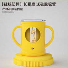 天喜(TIANXI)牛奶杯 带刻度儿童吸管水杯宝宝玻璃水杯防摔泡奶粉可冷藏可微波双手柄带把手 长颈鹿款(防摔带吸管款)