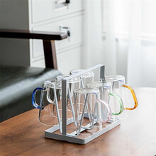 古德窑 玻璃杯带把6只装喝茶杯子功夫茶具耐热透明家用品茗绿茶杯套装 杯架+六只装玻璃水杯六色各1(260ml)
