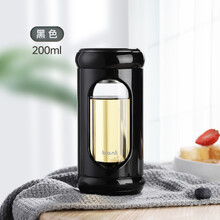 bianli鲤集高颜值双层防烫迷你玻璃水杯情侣家用随手杯便携防漏隔热隔茶小巧泡茶杯子200ml 黑色