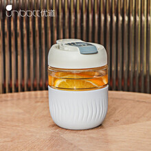 UNIBOTT优道 水杯 玻璃水杯隔热便携创意一杯双盖高硼硅随手杯子 Soft cute 月灰白360ml
