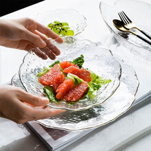 摩登主妇 金边玻璃水果盘客厅家用创意水晶玻璃沙拉碗甜品碗 7.8英寸冰花金边中圆碗(透明)