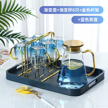 青苹果茶杯客厅家用轻奢玻璃水具水壶水杯杯具套装现代简约高档创意北欧 渐变蓝钻石壶+水杯6只+金色杯架+蓝色茶盘