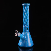 DIZUN加厚新款高27厘米 彩色波纹玻璃水烟枪加厚无过滤 玻璃BONG配14#烟锅