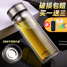 富光双层玻璃杯男女士玻璃水杯商务办公茶杯车载过滤泡茶杯隔热杯子 黑色-420ml