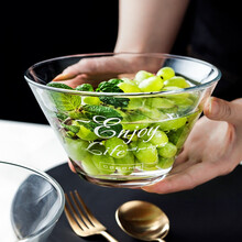 瓷彩美(CECEME)创意玻璃水果沙拉碗 家用玻璃碗甜品碗蔬菜料理碗早餐碗无铅加厚 白-Enjoy life沙拉碗