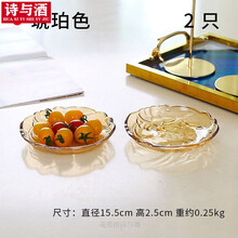 玻璃托盘果盘金边透明玻璃水果盘小精致客厅家用零食盘网果盘子前台瓜子盘 琥珀色(2只)
