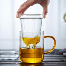 美斯尼 马克杯茶杯玻璃茶具茶水分离杯子套装泡茶玻璃水杯咖啡杯加厚带把手女男士过滤大号耐热 黄把儒雅杯