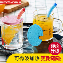 曼迪凯waideecia 牛奶杯玻璃水杯玻璃杯子刻度吸管杯奶粉杯宝宝喝牛奶冲奶粉杯可微波早餐酸奶杯子 粉色款 (杯子+感温勺子+硅胶盖)