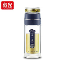富光 泡茶师系列玻璃杯 茶水分离杯 双层透明玻璃水杯 带滤网商务办公泡茶杯子 蓝色290ML