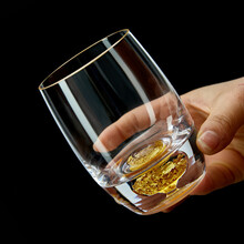 VINOS耐热泡茶玻璃杯家用金箔水晶玻璃水杯泡茶杯绿茶杯喝水杯子带杯架套装 矮款240ML*1只